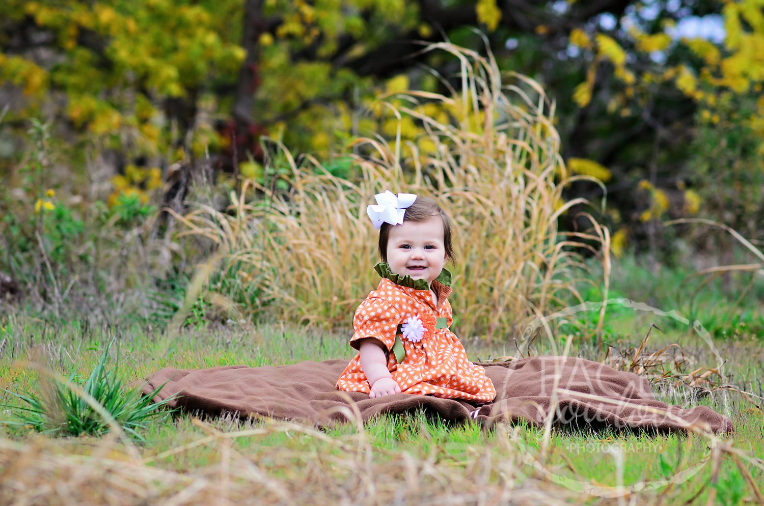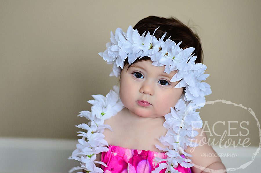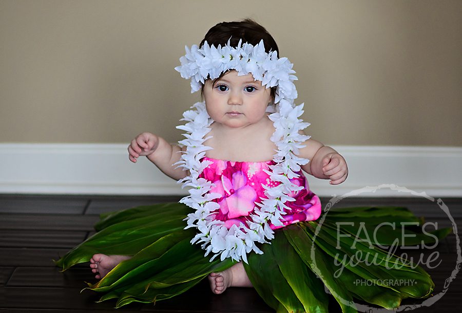 Last month I spent some time with a sweet, little hula baby! Our session was filled with clothing that was important to the family – a pink dress her mom had worn for her 7 month session, a real hula skirt (all the way from Hawaii!) and lei, just like the one her mom and aunt had worn at their 7 month sessions, and an adorable fall dress made by her grandmother. I can’t wait to see what she wears for her next session (in January)! (To see her first session, click here!)