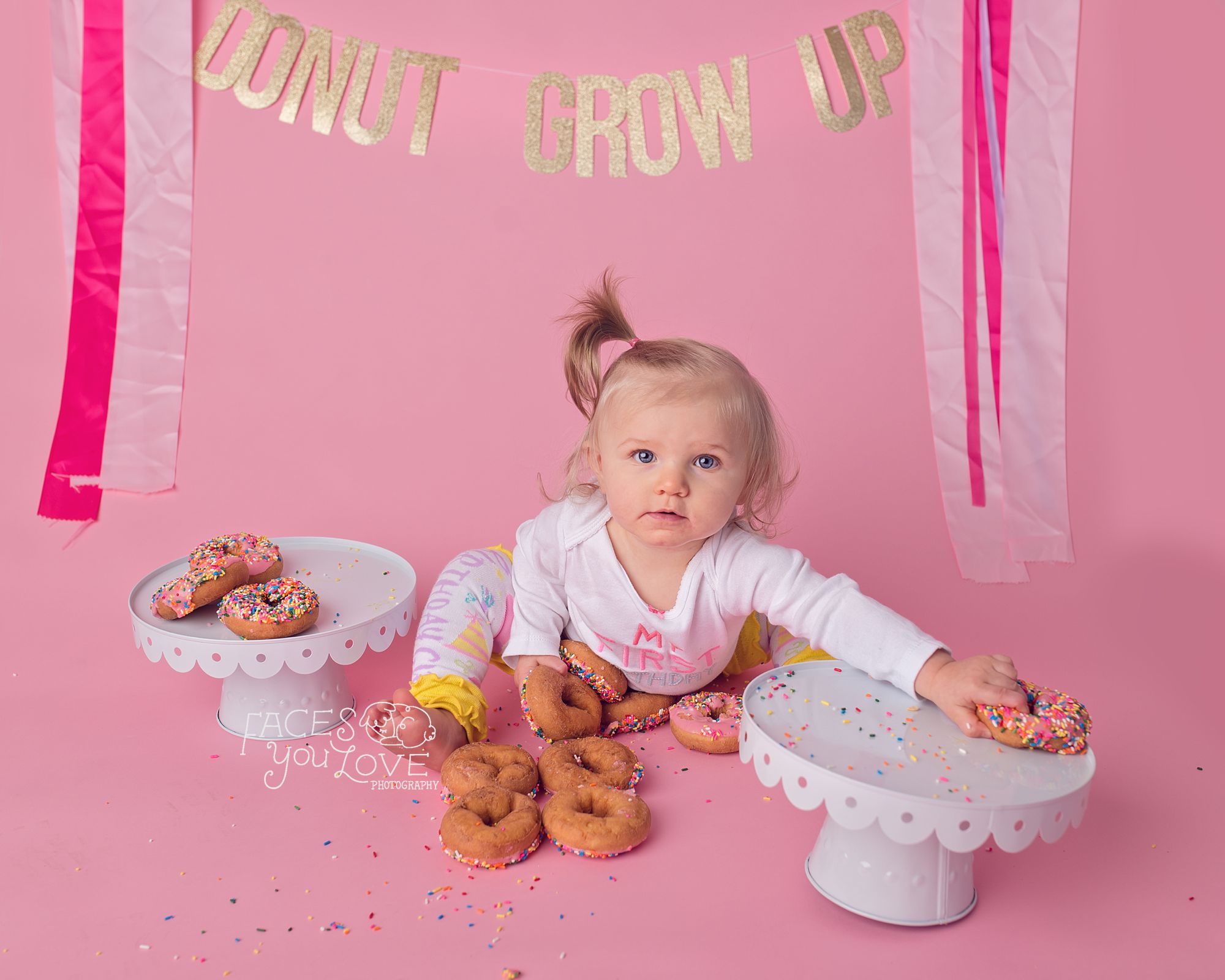 The rest of this sweet little Watch Me Grow graduate’s one year session will be blogged eventually, but for now I just had to share how we wrapped her last session up! Instead of smashing cake, her mama asked if we could do a donut set up. Not just regular donuts, but donuts with sprinkles...